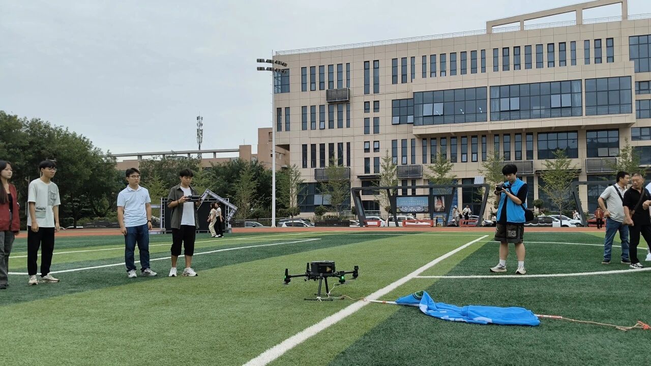 小操场上空测绘学院的无人机迎风飞翔,“欢迎新同学”的横幅翱翔天际,用独属于测绘学院的特色迎接新同学。操场上学院老师为家长和新生们介绍测绘学院的创新创业成果,科技竞赛等相关领域知识。