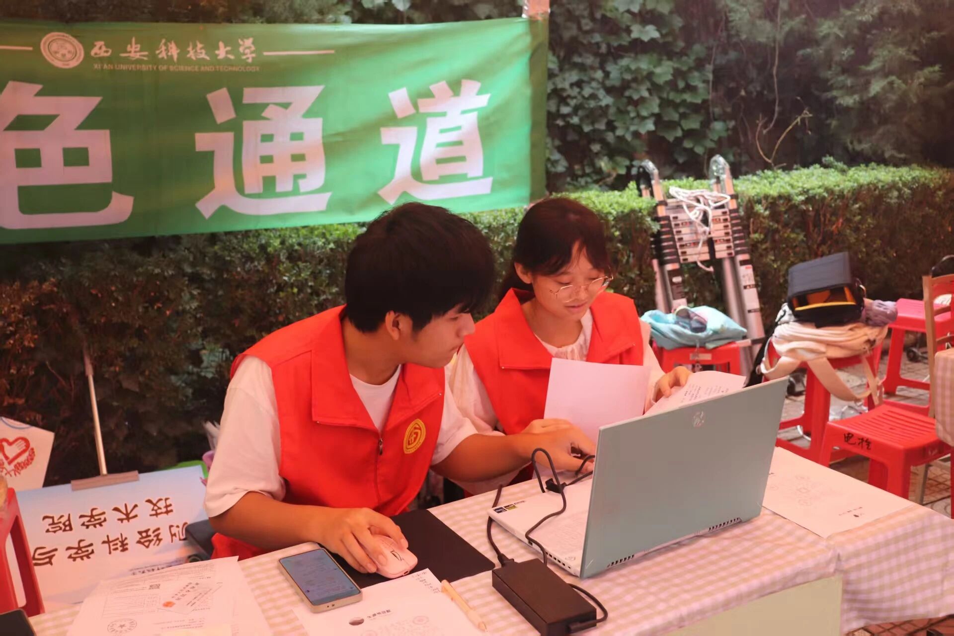 迎新现场,学长学姐们笑意盈盈。他们仔细核对信息,耐心解答新生们的种种疑问,用热情驱散新生初来乍到的局促。身穿红马甲的志愿者们更是步履不停,指引路线,在家长休息区为家讲解学院相关情况,相关专业课老师也为家长答疑解惑,让家长与新生们对测绘类专业有了更深刻的认知。