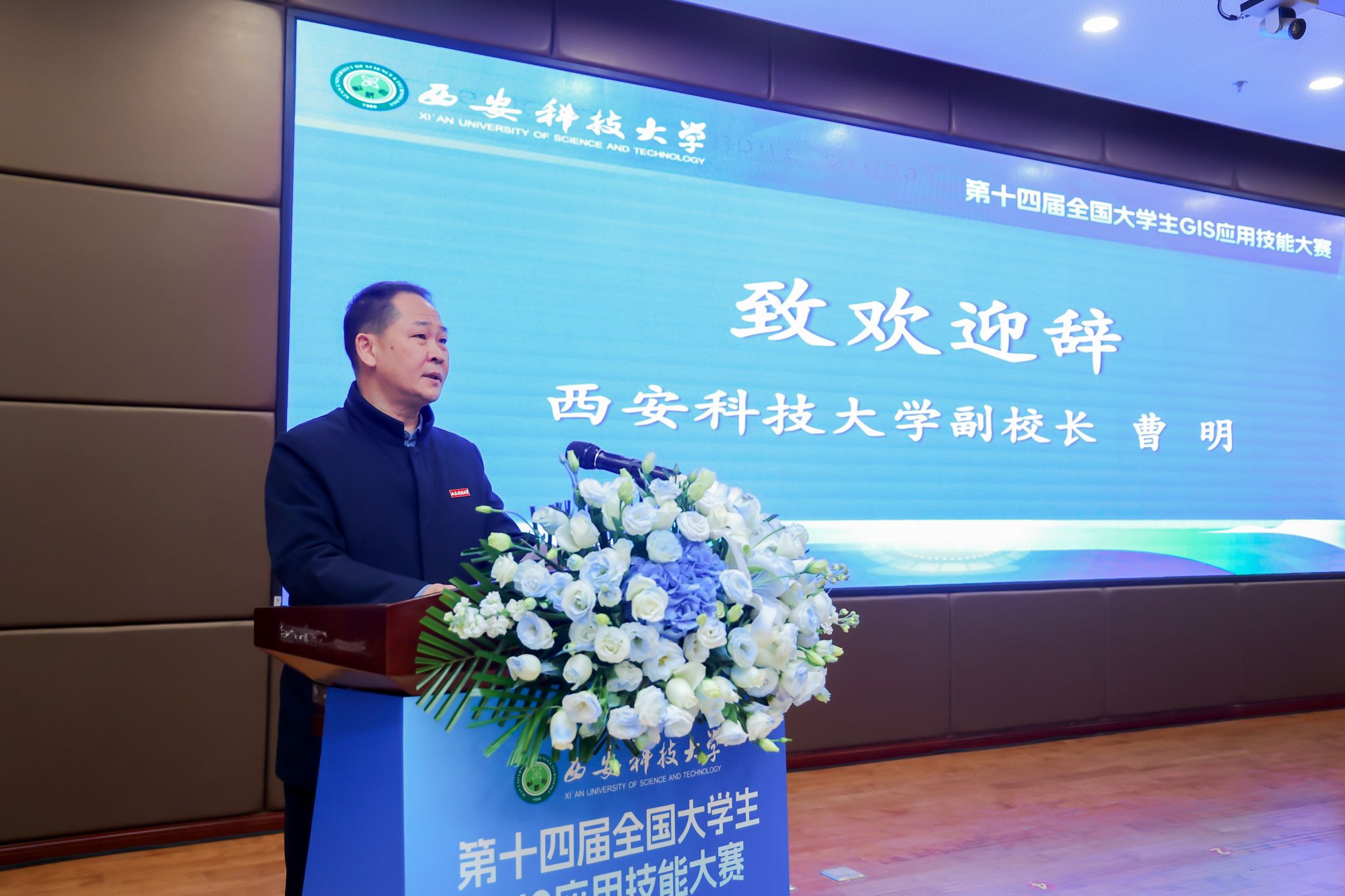 11月15日上午,论坛开幕式在西安科技大学临潼校区煤炭科技中心二楼报告厅隆重举行。西安科技大学副校长曹明,中国地理学会副理事长、陕西师范大学副校长董治宝教授,中国地理信息产业协会教育工作委员会主任委员、教育部地理科学类专业教学指导委员会副主任、昆山杜克大学校长刘耀林教授,教育部地理科学类专业教学指导委员会副主任、南京师范大学汤国安教授,欧亚科学院院士、中南大学吴立新教授,大赛裁判长、浙江大学求是特聘教授刘仁义教授,中国矿业大学汪云甲教授、西南大学朱庆教授、武汉大学杨必胜教授、中国地质大学(武汉)谢忠教授、西安电子科技大学邢孟道教授、中国地理信息产业协会教育工作委员会主任委员、南京师范大学张书亮教授等专家领导现场出席开幕式,中国地理信息产业协会李维森会长线上出席。同时,北京师范大学教授刘慧平,东北师范大学教授张洪岩,西北师范大学教授赵军等专家,陕西省测绘地理信息学会、陕西省地理信息产业协会、陕西省地理学会、西北农林科技大学、长安大学等协办单位领导及各相关高校的专家也现场出席开幕式。开幕式由西安科技大学副校长罗振敏教授主持。